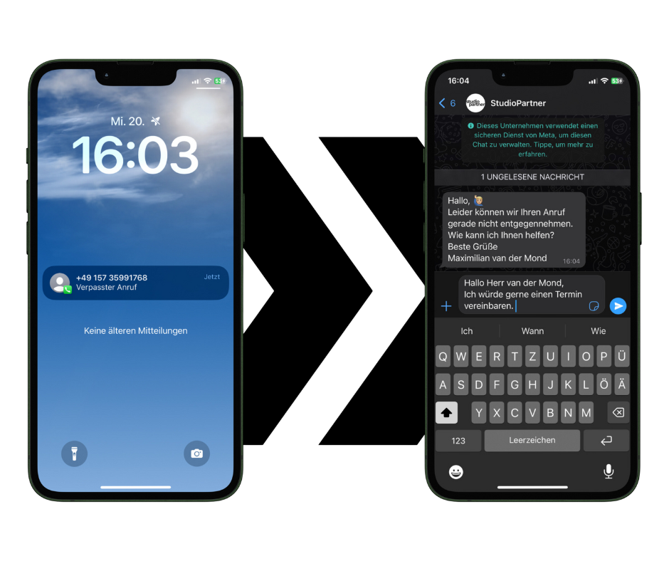 Bei jedem verpassten Anruf knüpft die Anruf-Brücke sofort den Kontakt durch eine personalisierte SMS- oder WhatsApp-Nachricht. Dadurch bewirken Sie, dass keine Anfrage verloren geht und Ihre Kunden sofort mit Ihnen Anliegen auf Sie zukommen können.